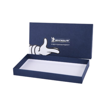Ruban tirette en satin dans le fond de la boite pour permettre la préhension des fiches présentées dans la boite.