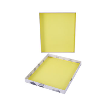Réalisée en carton 15.10ème un coté blanc et recouverte d’un papier blanc 125g avec imprission numérique